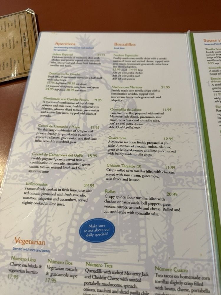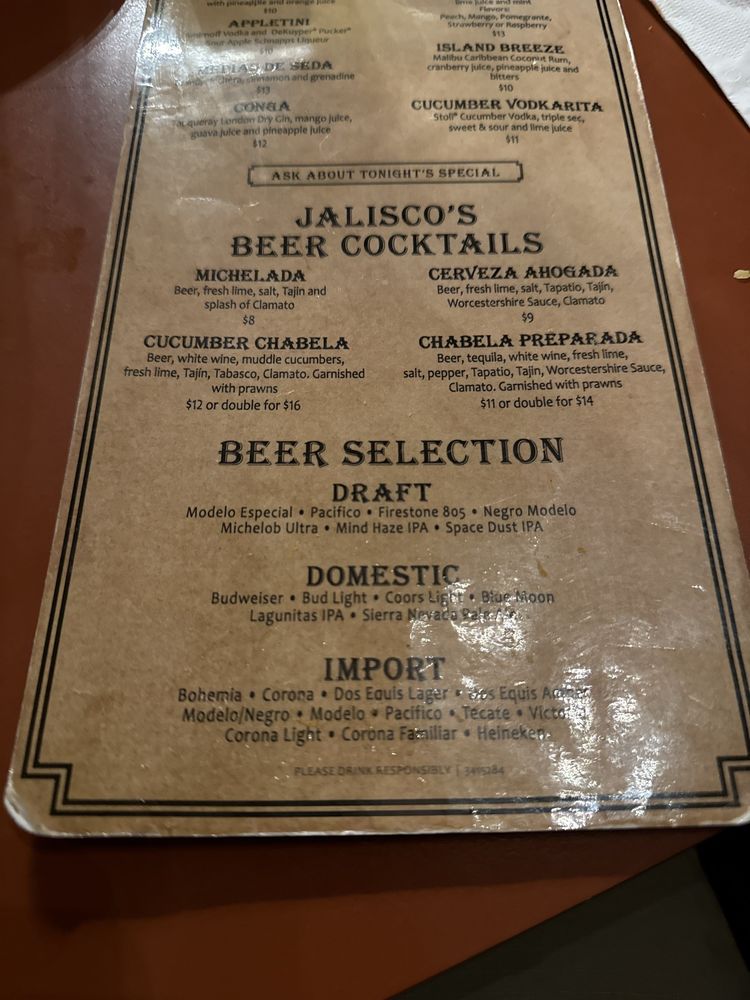 Introducing Jalisco Restaurant, a vibrant Mexican bar in Watsonville, CA. Known for its diverse menu with options for vegans and limited vegetarians, the restaurant offers a range of dishes such as the Jalisco Especia with marinated skirt steak and prawns, or the Ostiones en Su Concha featuring fresh Blue Point oysters. The Vegetarian section includes options like the Nmero Tres quesadilla with a mix of cheeses and sautéed vegetables. Don't miss out on the Bocadillos like the Nachos Especiales or the Quesadilla de Jalisco. With live music and a full bar, Jalisco Restaurant is the perfect spot for a fun night out. The welcoming atmosphere, delicious food, and various amenities like outdoor seating and pool tables make Jalisco a must-visit destination for Mexican cuisine enthusiasts.